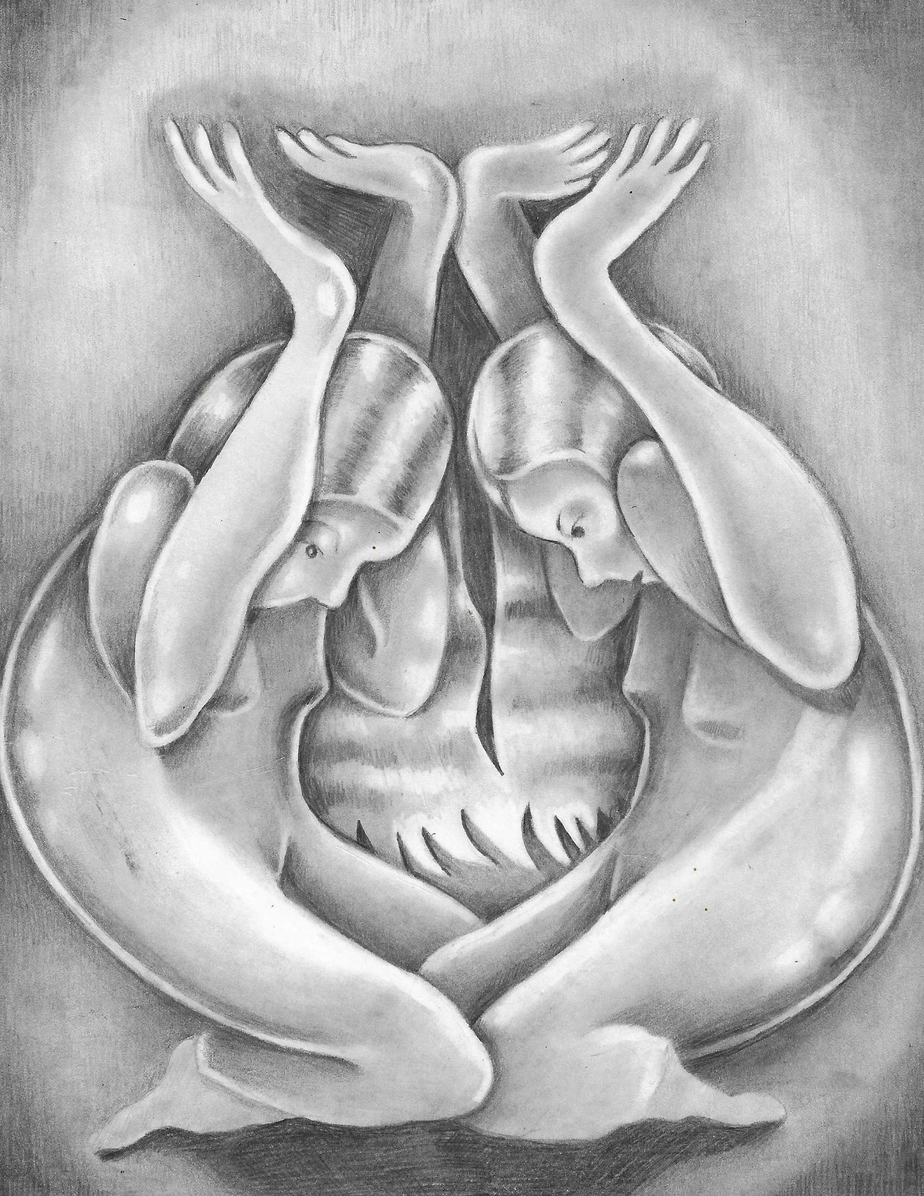 A blessing and a curse, coloured pigment on paper, 5"x8"